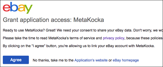 10. In MetaKocka wählen Sie unter "Verbindungen" die "eBay-Verbindung" und dann "Hinzufügen". Ein Formular zum Bearbeiten der Verbindung wird angezeigt