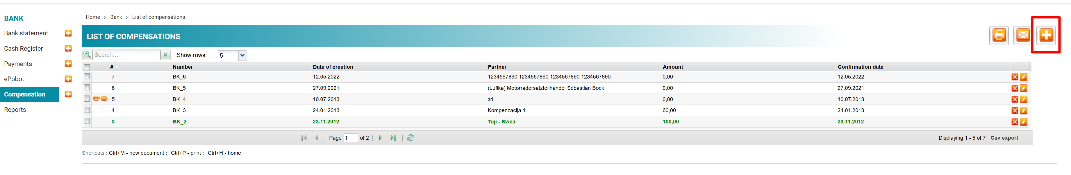 When the compensation is confirmed, tick (6) and save. The selected invoices will marked as paid with compensation.