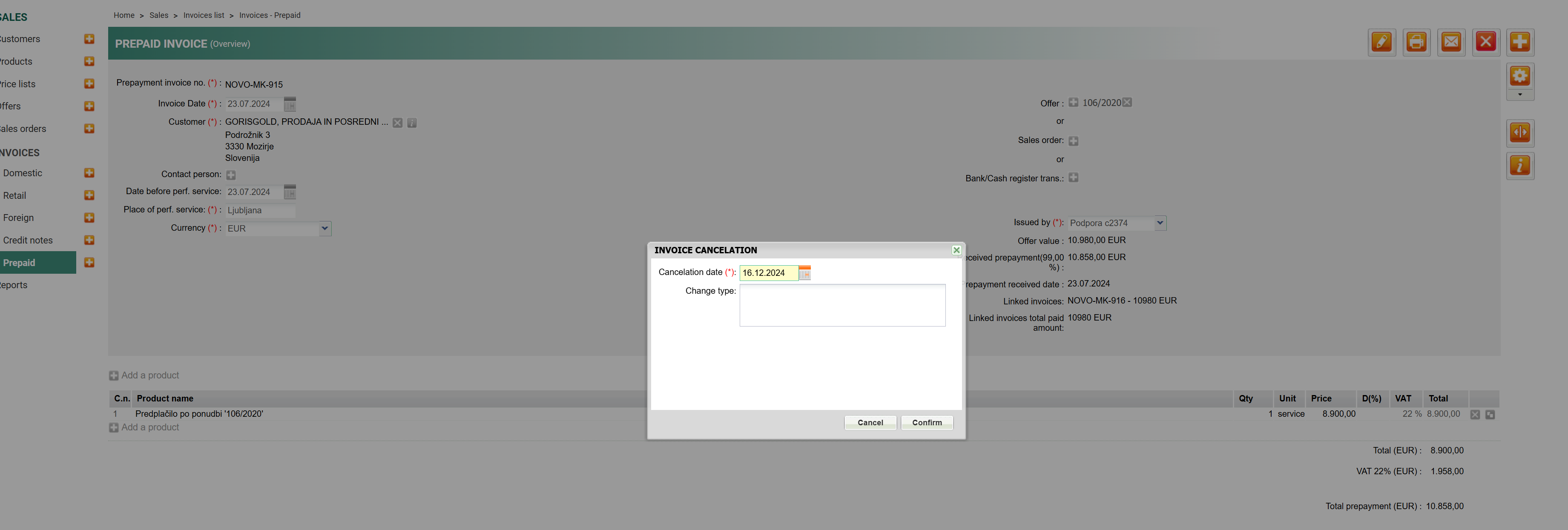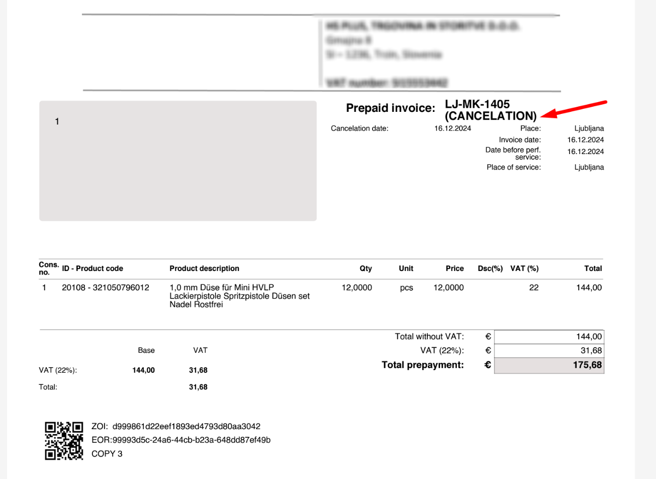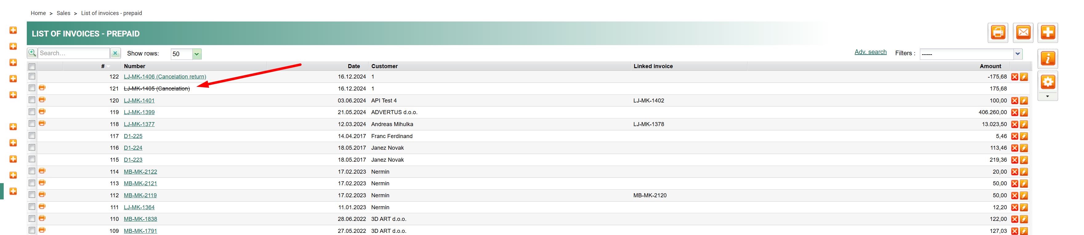 The ''cancellation'' info is added next to the prepaid invoice like on the picture below.