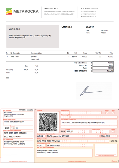 The payment order can be displayed on the offer by printing the "Offer - payment order"