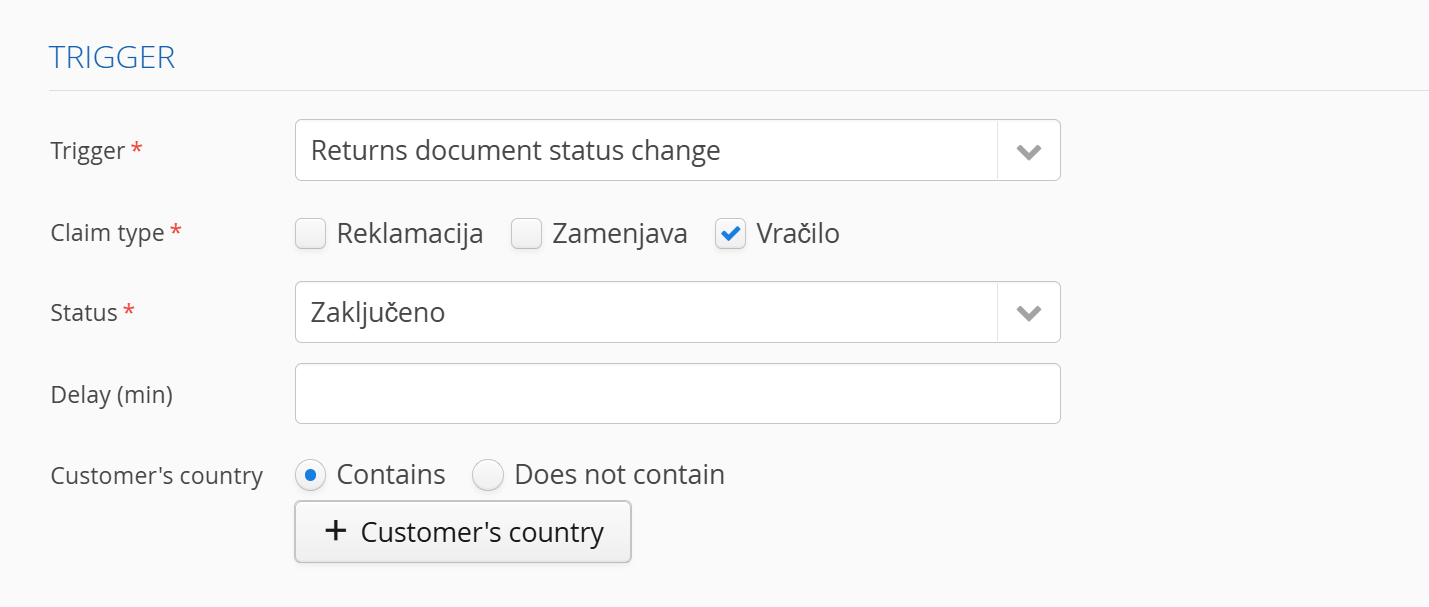 Notifications will be sent only in case of fulfilling all conditions below. In all four cases, more points can be added, but they can also be left empty.