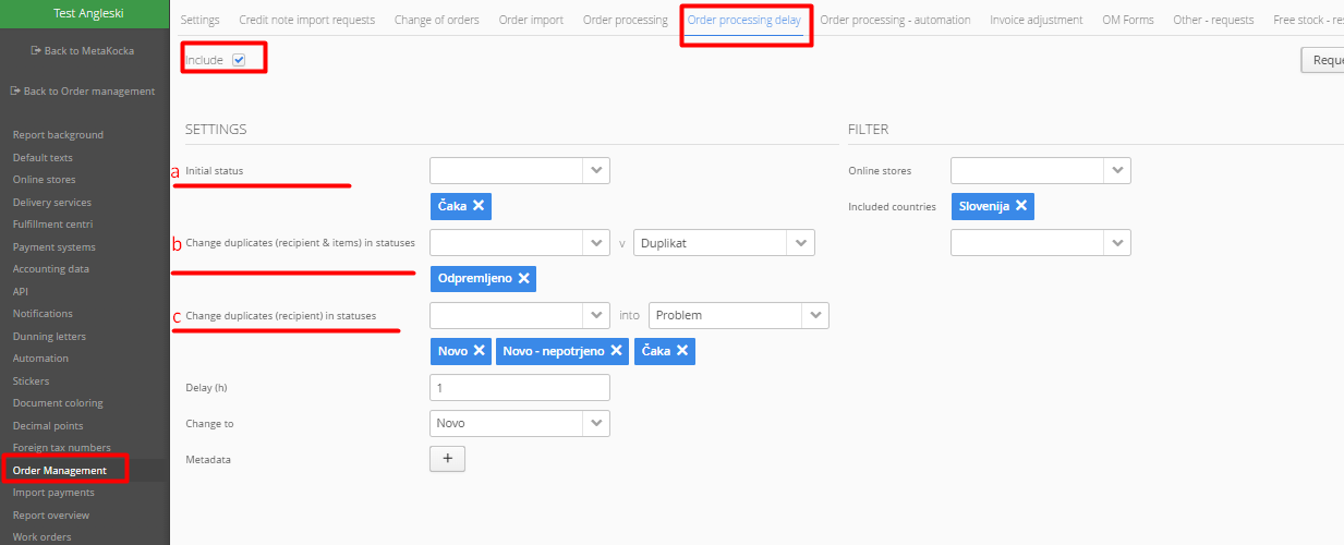 Define the conditions for orders not to wait for the delay and move to the next status (Duplicate, Problem, New status) changed immediately.