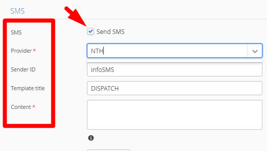 After activating SMS notifications, a new trigger should be added in Additional settings/Notifications, determining conditions for when the SMS should be triggered.