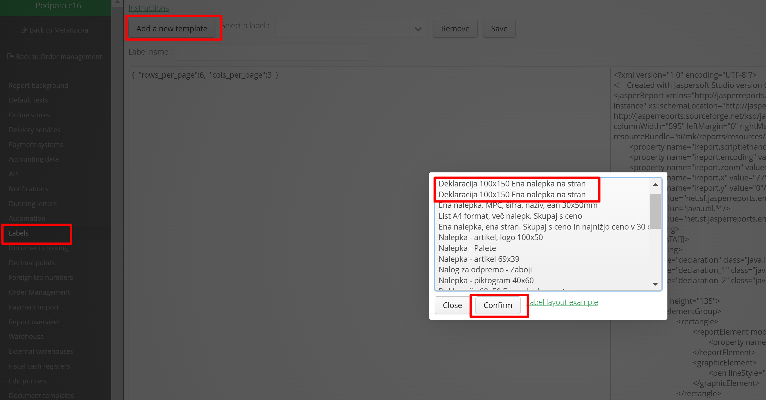 Declaration 63,5x38,1, Declaration 63,5x46,6, Declaration 60x50, Declaration 60x60, Declaration 60x50 One label on page and Declaration 60x60 One label on page