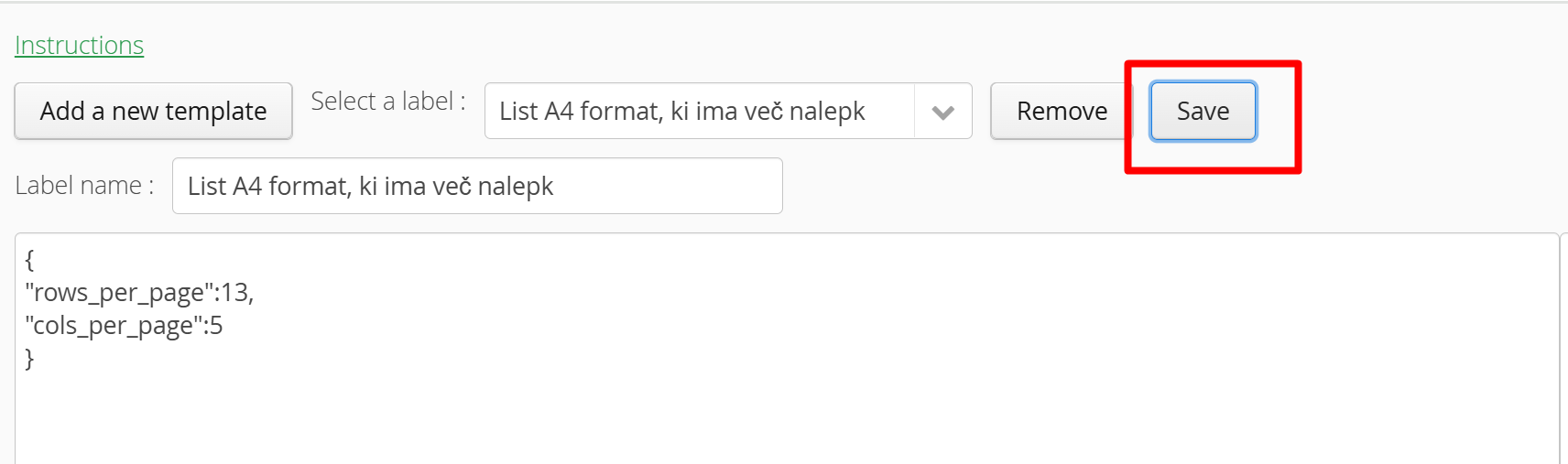 After the selection, save the template