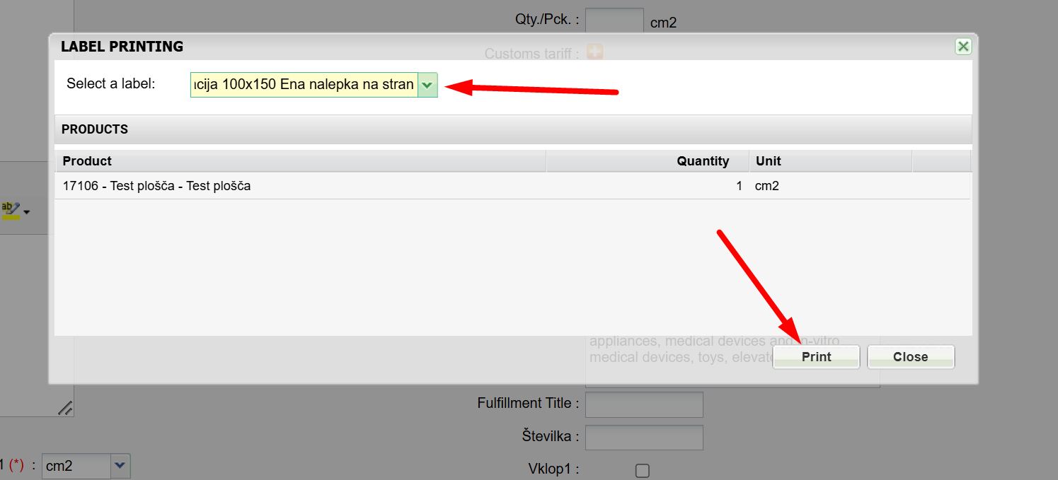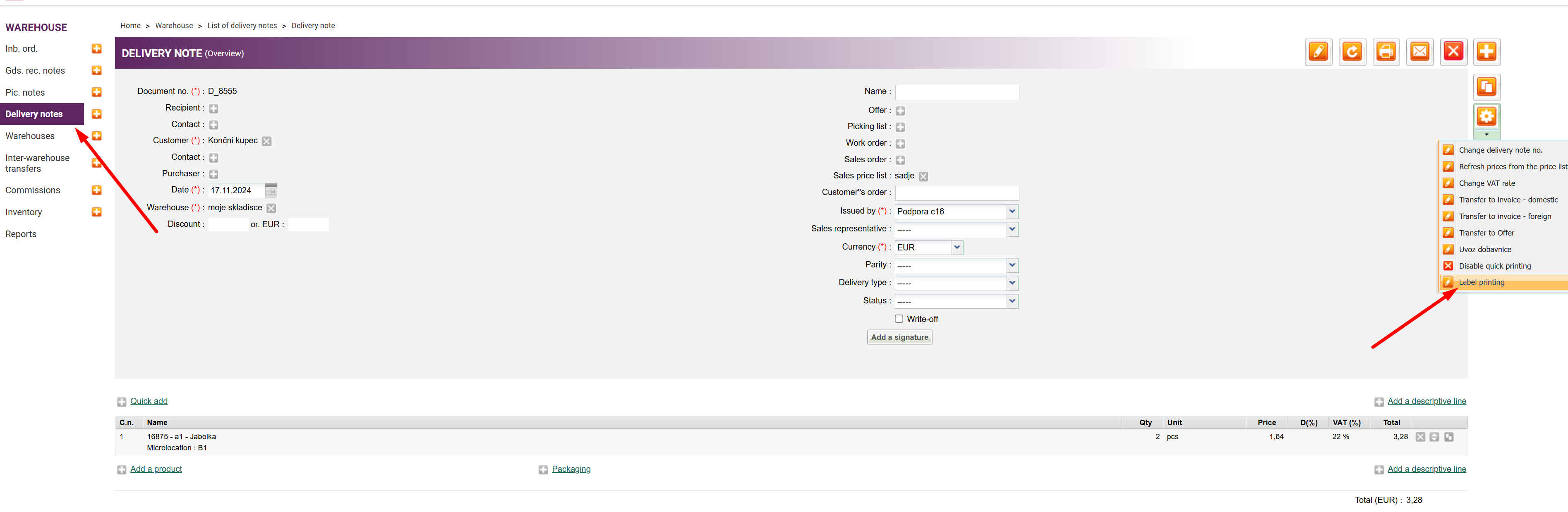 3. Declarations can be printed from the products list or the list of documents, such as goods received notes, delivery notes, and inter-warehouse transfer order.