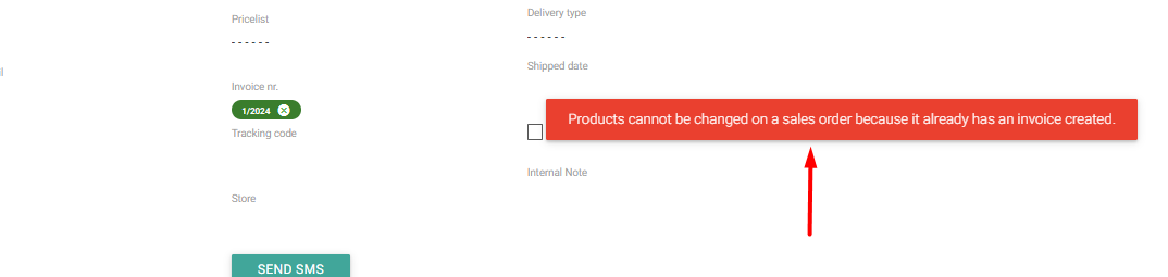 Functionality: Disables the change of products on the invoiced orders, prevents potential errors, and removal of products in OM, if the invoice is already issued. By activating this functionality, MetaKocka will warn you that any subsequent changes are no longer possible, while the order and invoice can still be modified outside Order Management.