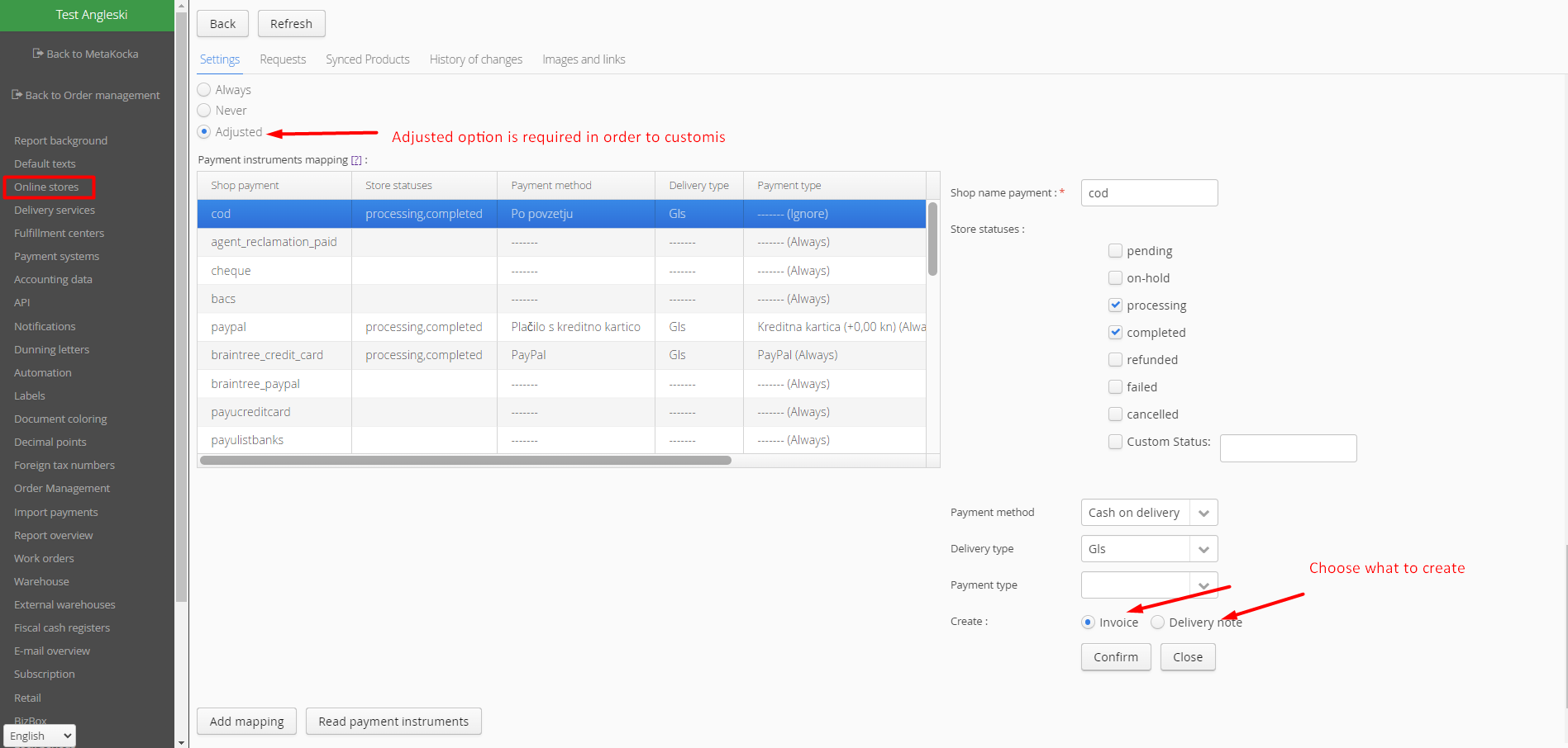 When transferring the orders from the online store, functionality enables specifying the document type that should be created. Please, specify the document type in the online store settings for payment instruments mapping.