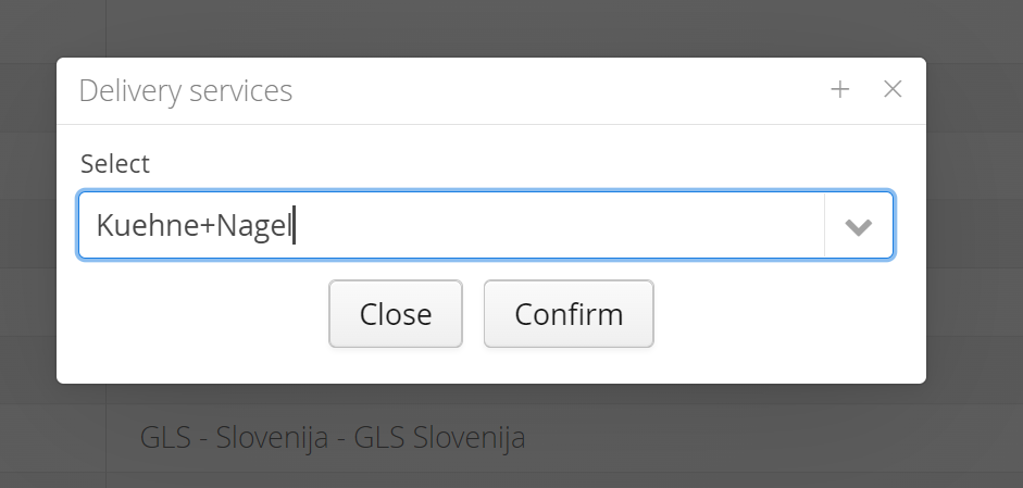 2. Select the delivery service Kuehne + Nagel and confirm it: