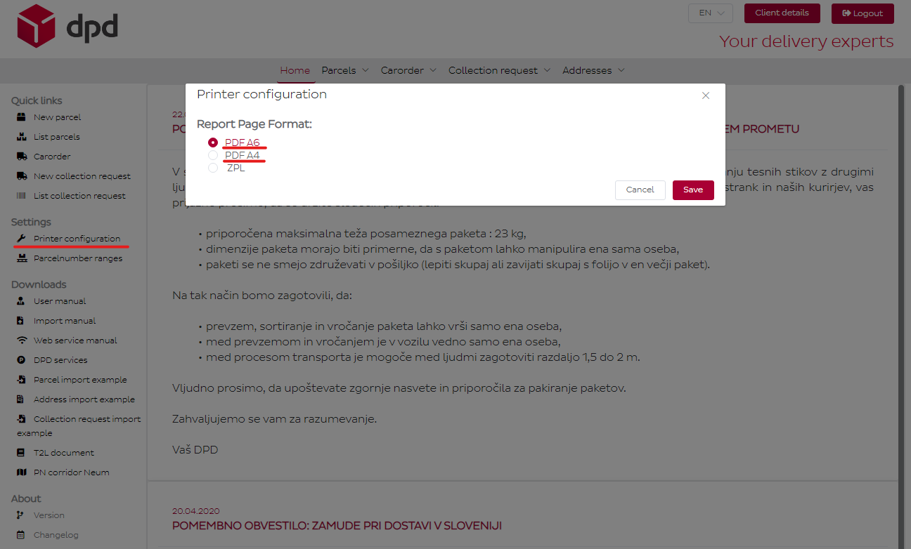 3. enter data that you received from DPD Slovenia/Croatia