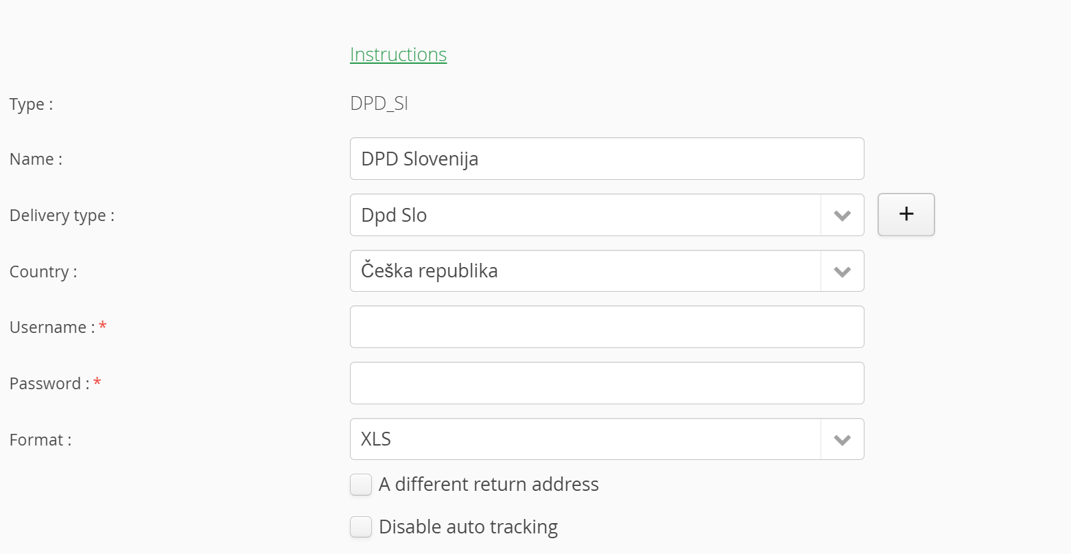Specify the new type of delivery that will be used for delivery service DPD Slovenia/Croatia, you can add new (+)