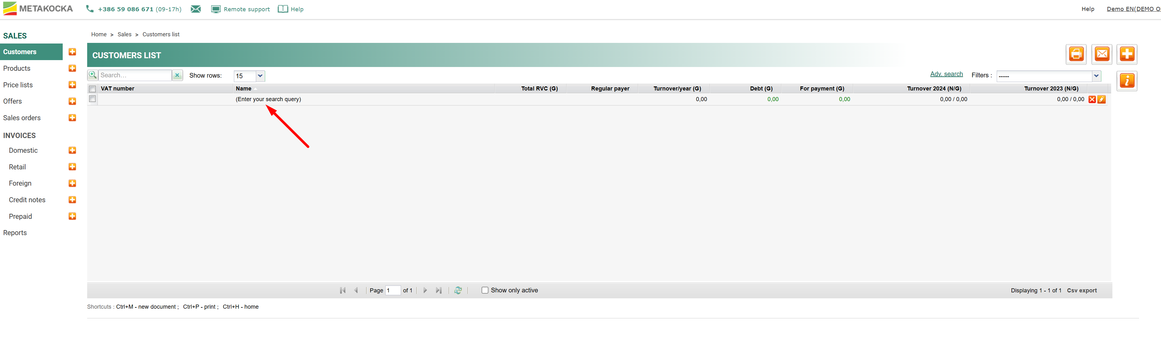 If there is a large number of customers/suppliers, the redirection to the form might take some time as it involves reading the last group of data. In the case of Order Management/online stores, the number of customers is so large that individual records are not useful for selection and the search should be made instead. If this feature is enabled, in the customers/suppliers list, a blank window will be displayed. Only after the search has been made, the requested data will be available.