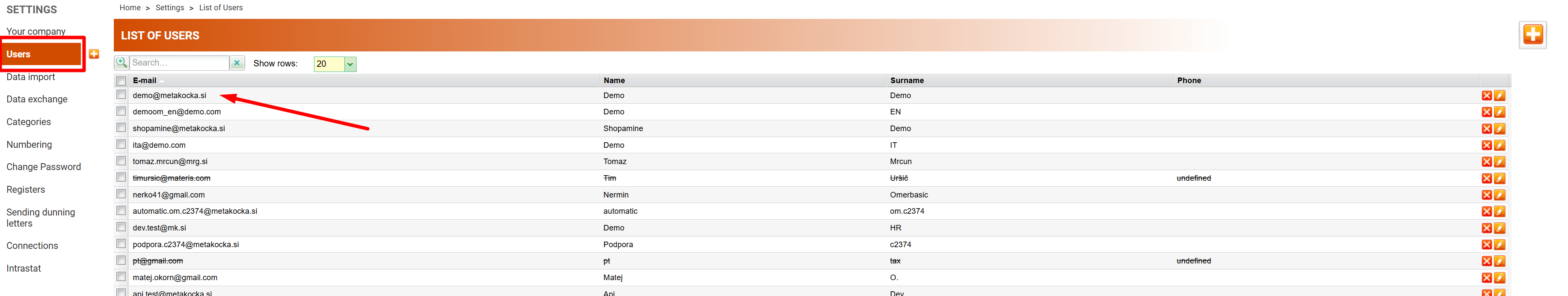 1. Find the user in the settings: