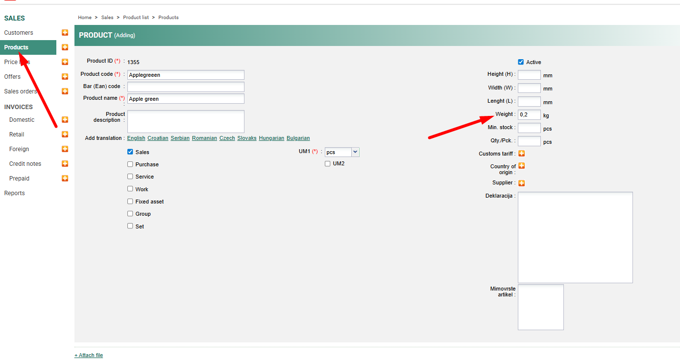 Enter the weight for the item.