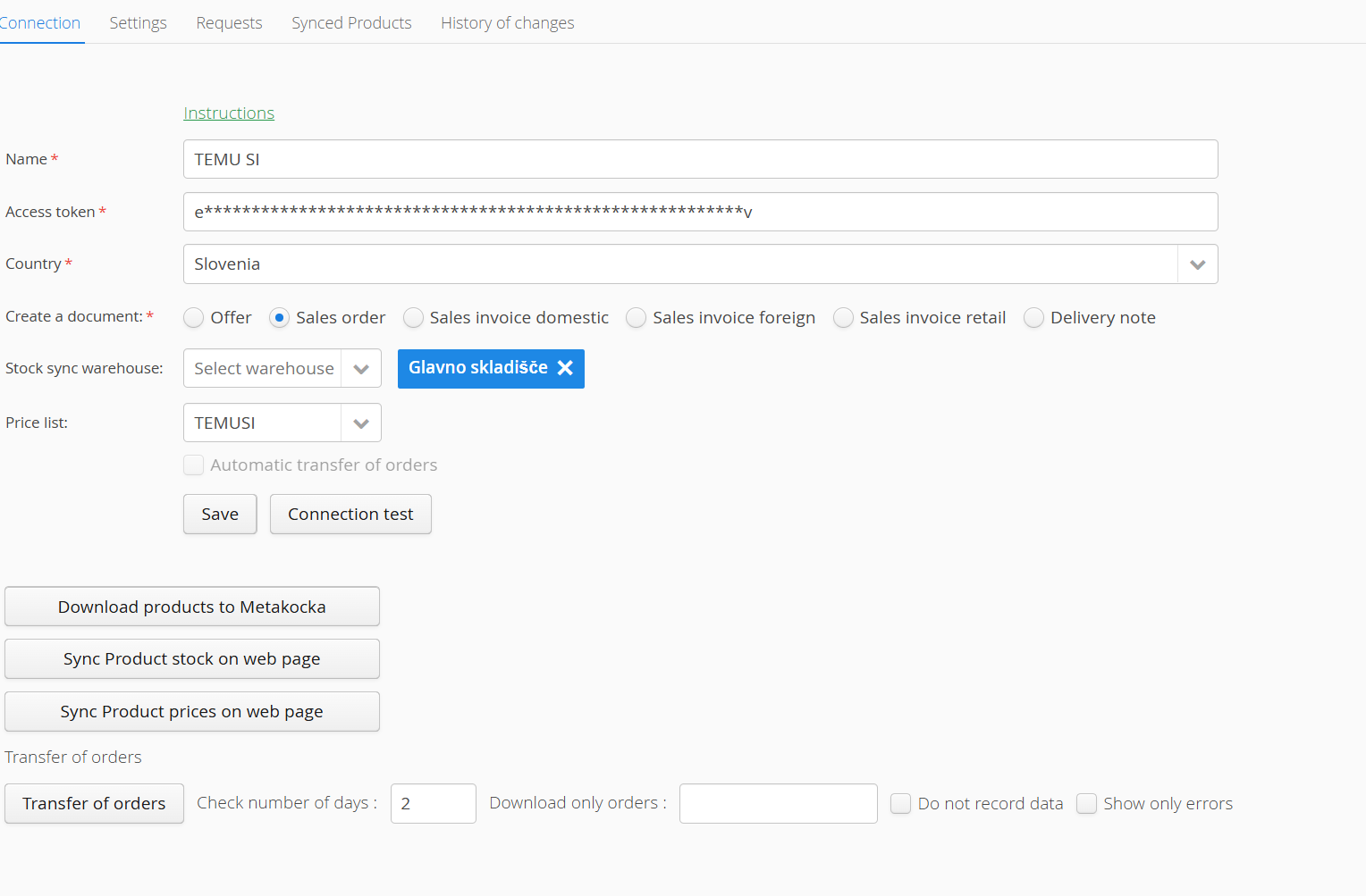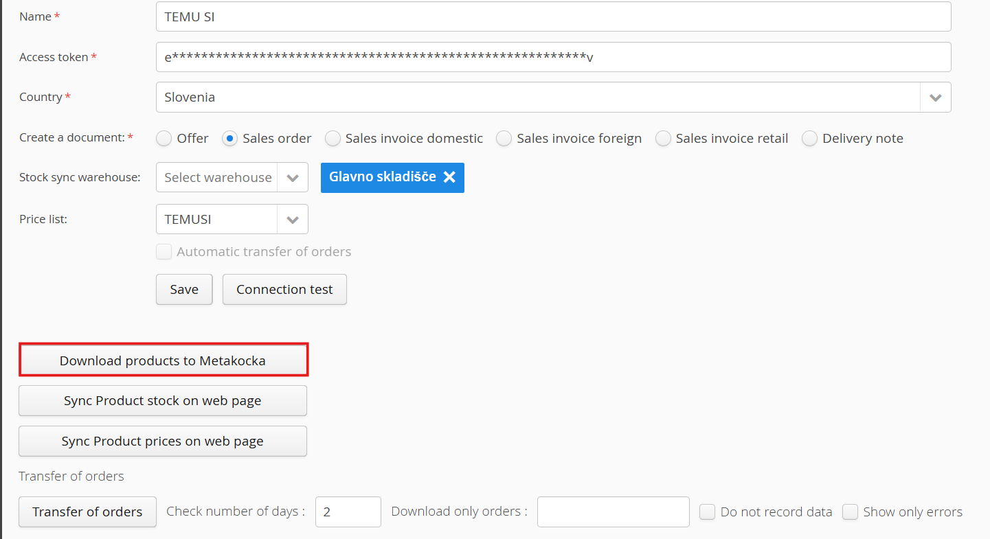 Synchronization of orders from Metakocka to Temu.