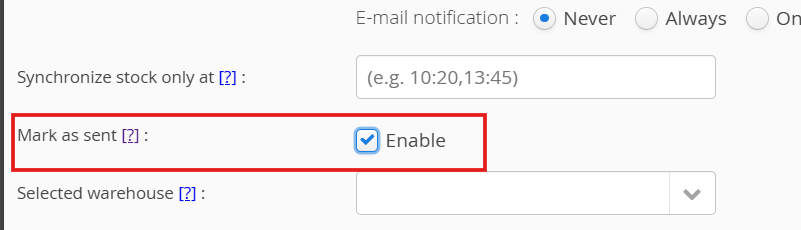 Select the warehouse for inventory synchronization.