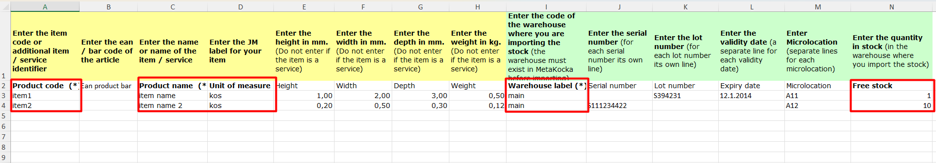 The location to which the stock should be assigned is specified in the column Microlocation.