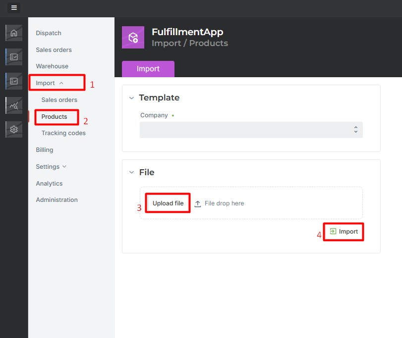 The file in which you enter the data for the import is attached at the end of the instructions.