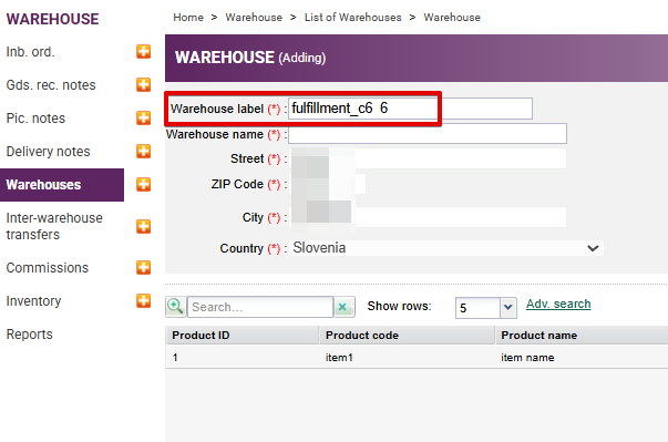 When entering warehouse codes, make sure that the code exactly matches the warehouse lable used by your client.