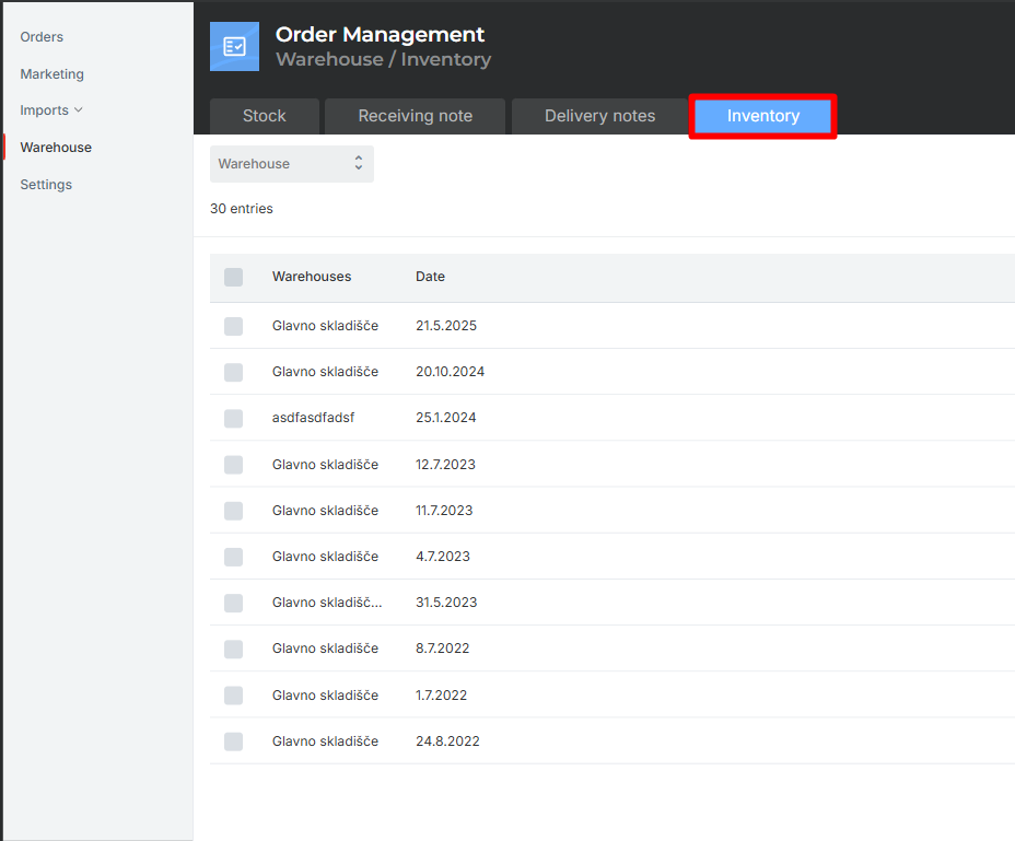 In the Inventory tab, you have an overview of all created inventory counts. By clicking on a specific inventory count, it opens so you can check which items it contains.