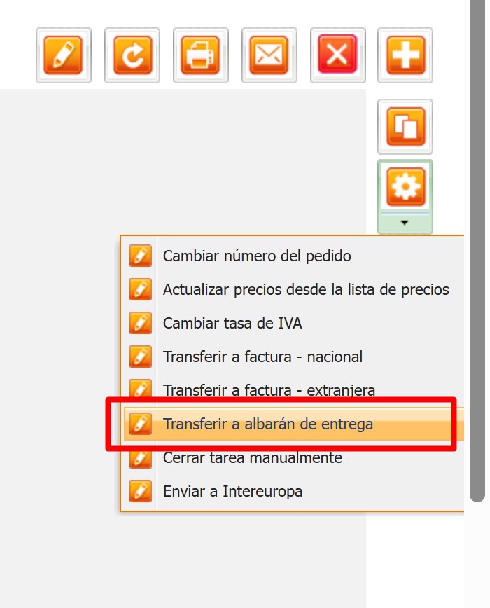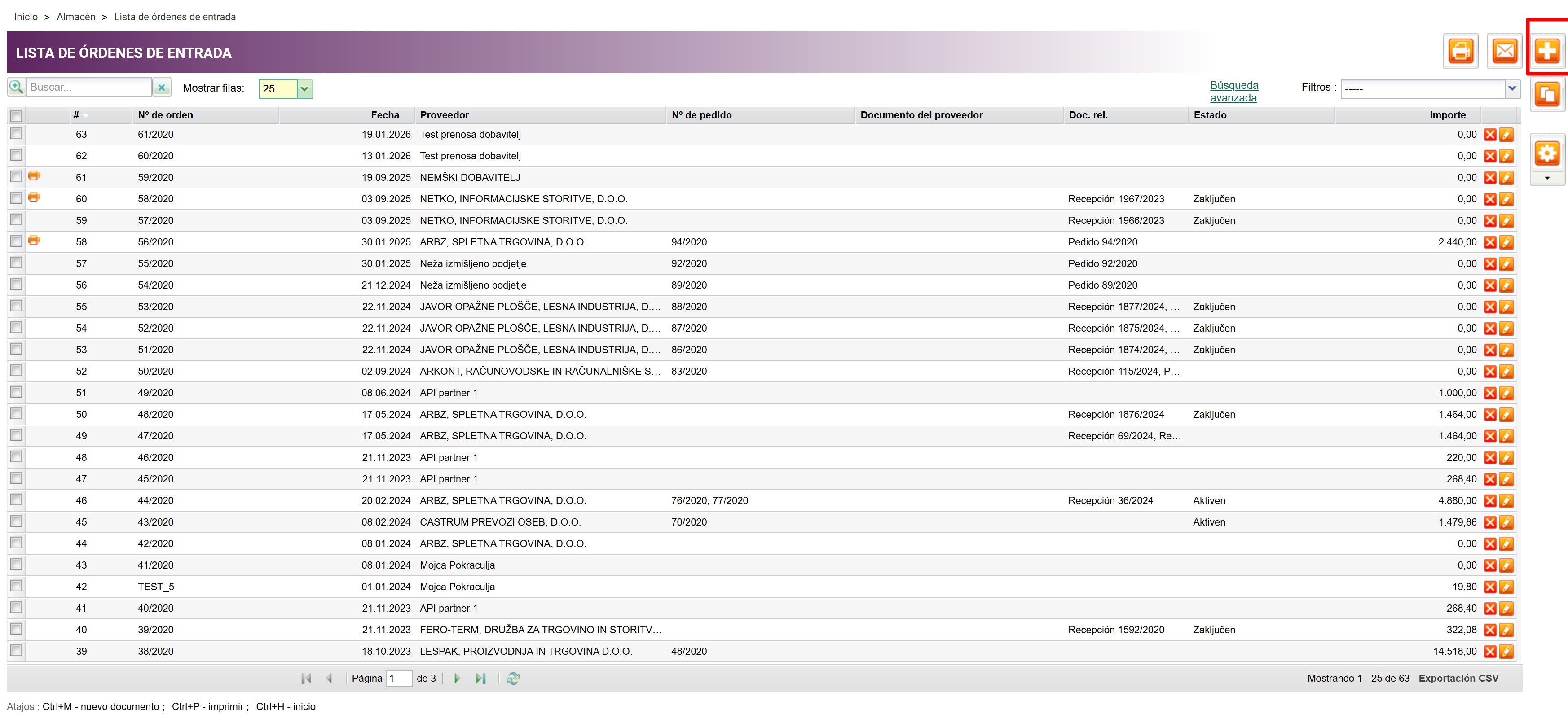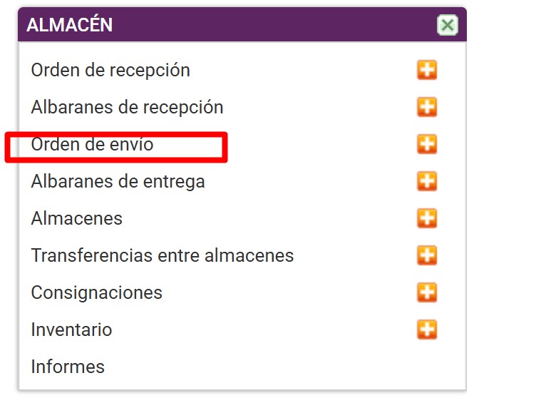 Pulse en el icono (+) para añadir una nueva orden de envío.