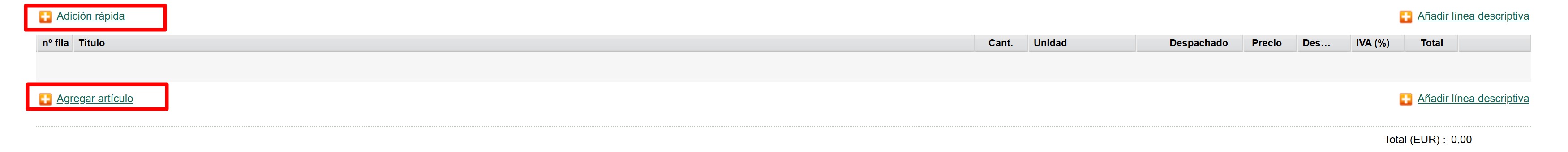 Al pulsar en (+) Adición rápida, podrá habilitar la adición rápida a la orden de envío, mediante un escáner de código de barras.