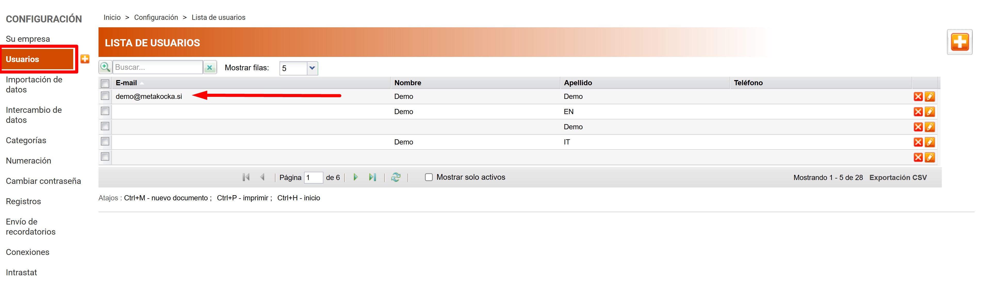 Pulse sobre Configuración -> Usuarios