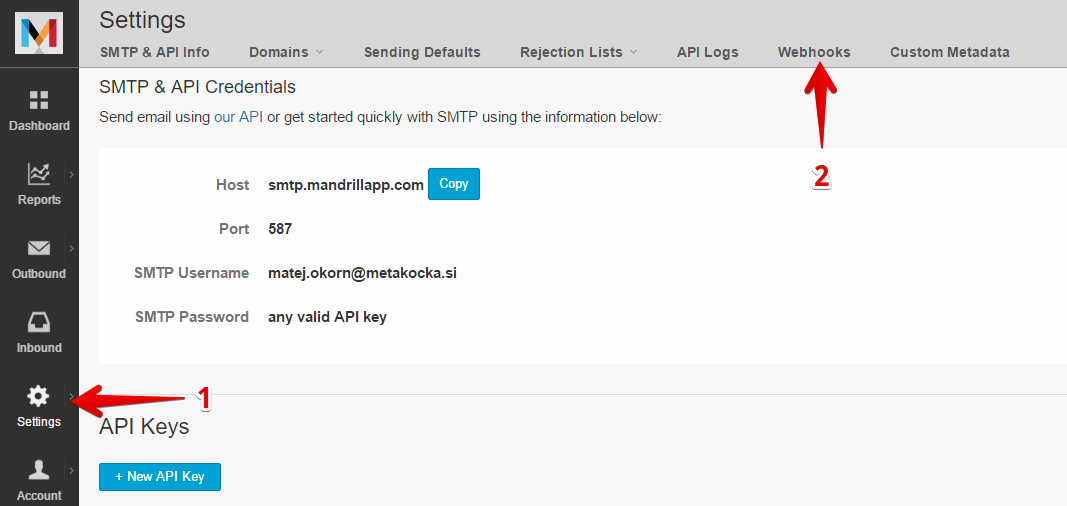 Para añadir webhooks en su cuenta de Mandrill, siga las instrucciones que se indican a continuación: