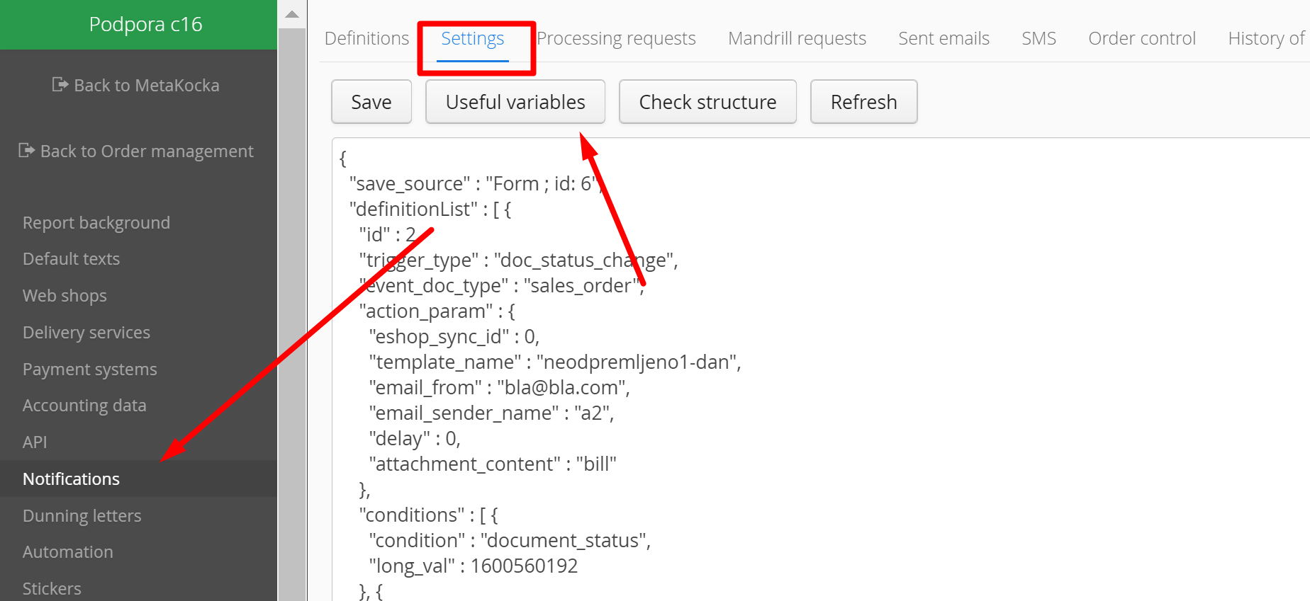 El requisito para su funcionamiento es tener ya insertado el enlace de Mandrill en MetaKocka .