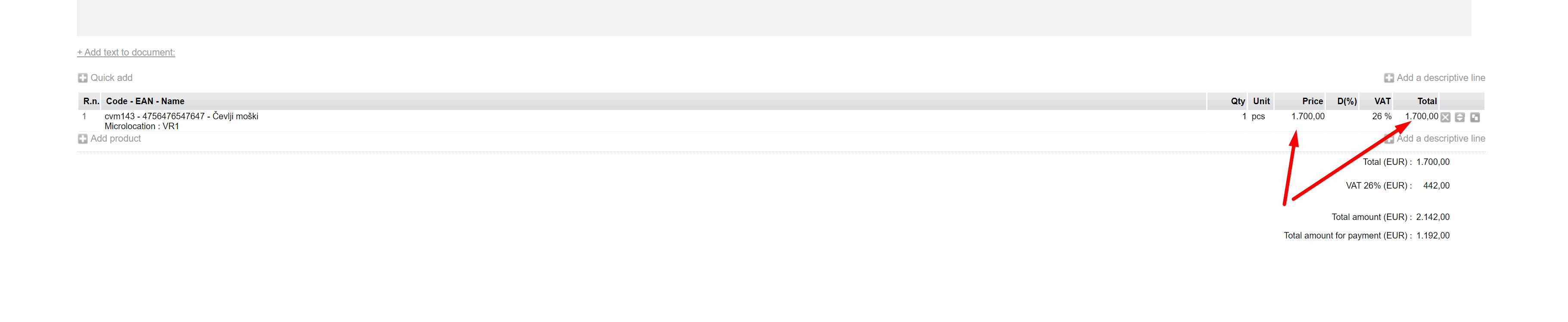 - El precio bruto debe convertirse a precio neto; pero, dado que el precio suele multiplicarse por grandes cantidades, el precio neto debería ser lo más preciso posible.Por ejemplo, un precio bruto de 1,99 EUR equivale a un precio neto de 1,6311475.
