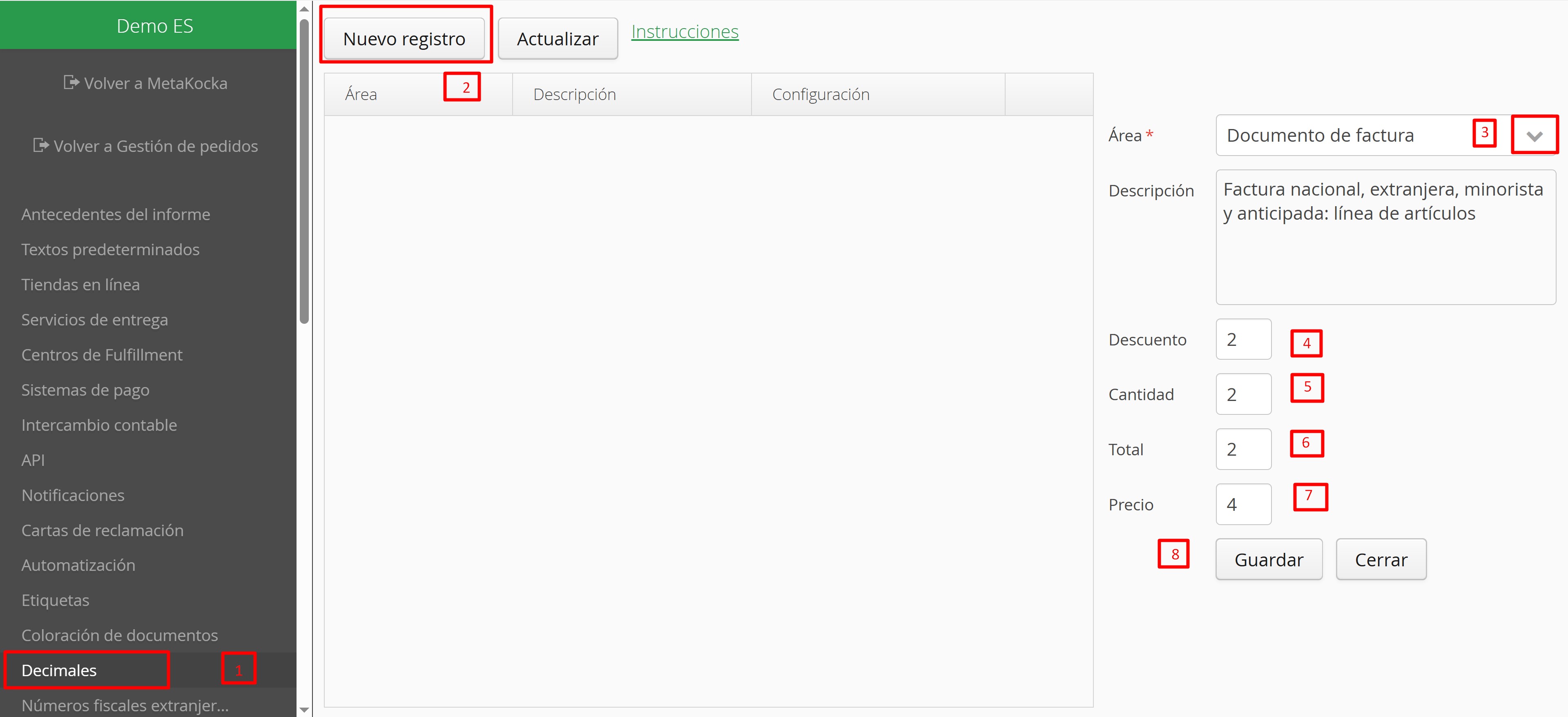 Ahora configuraremos los decimales correspondientes, tal y como se muestra en la imagen a continuación: