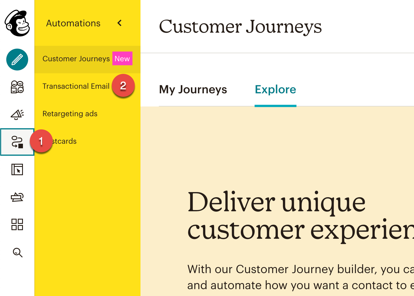 Después de iniciar sesión, haga clic en Automatizaciones y luego en Email Transacional.