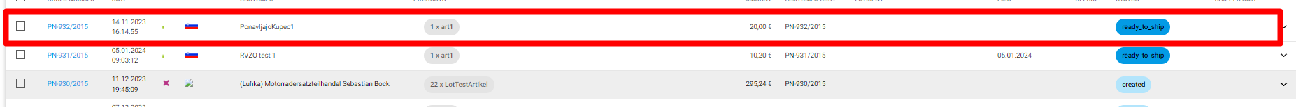 Con un doble clic en la línea de la lista, se abre el pedido de venta.