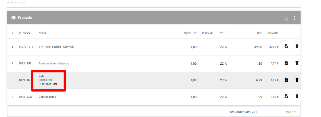 En la parte central del pedido se muestran los productos encargados, a los cuales puede añadir una descripción adicional y una nota.