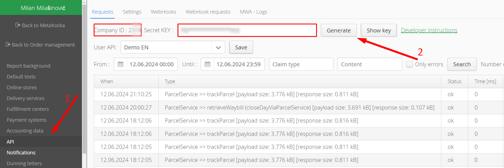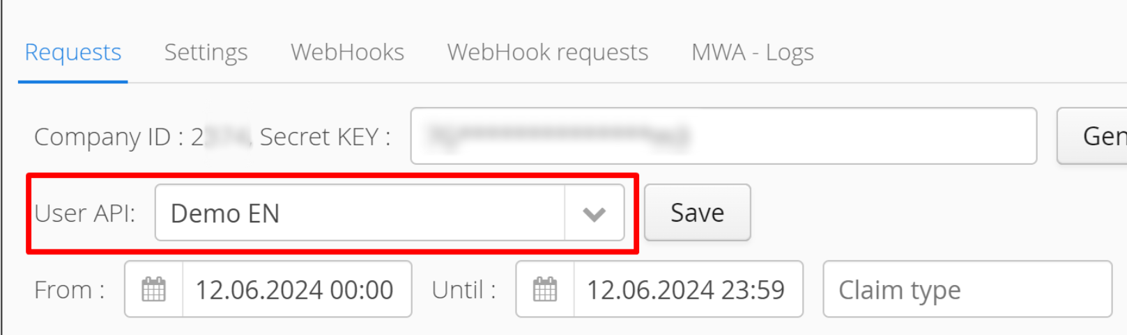 Si también se necesita el ID de la empresa, este está disponible justo al lado del campo de la clave secreta.