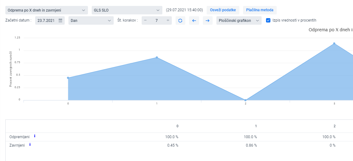 El gráfico muestra el tiempo de envío en relación con los paquetes no reclamados