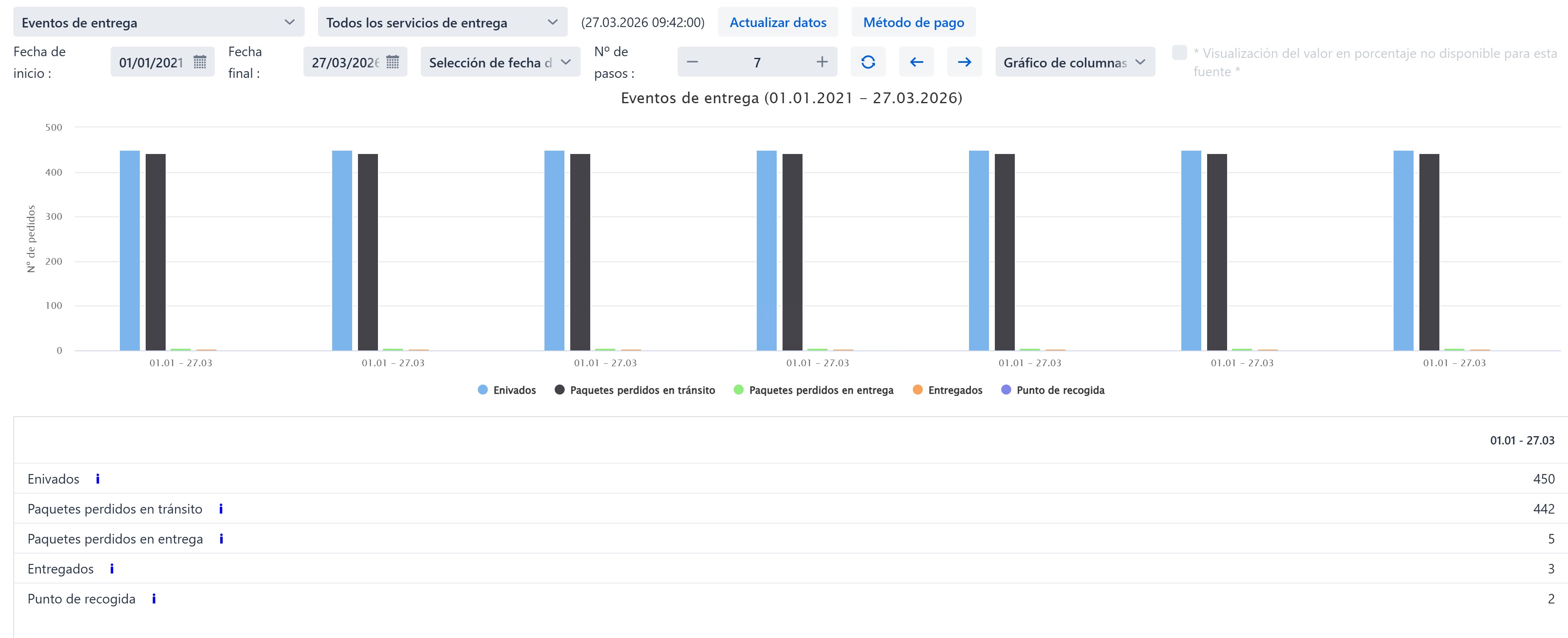 De esta manera, se puede filtrar por cada servicio de entrega o método de pago; asimismo, es posible validar cuántos paquetes quedaron en el punto de recogida, cuántos de ellos tenían una dirección de entrega incorrecta y cuántos se perdieron durante el tránsito o la entrega.