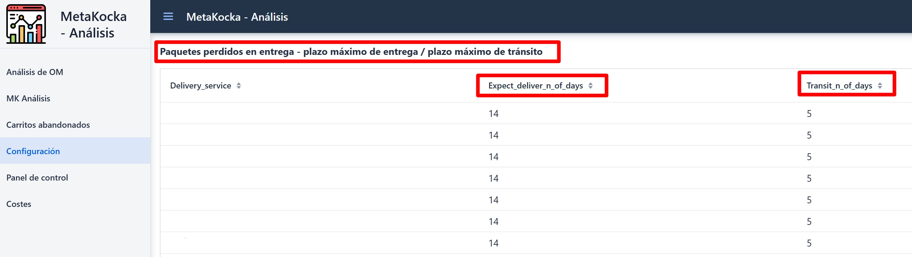 Para un funcionamiento óptimo, establezca el tiempo de tránsito y entrega para cada servicio de entrega en "Configuración":