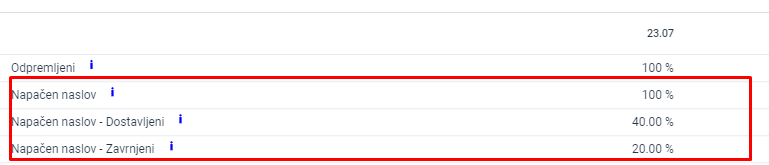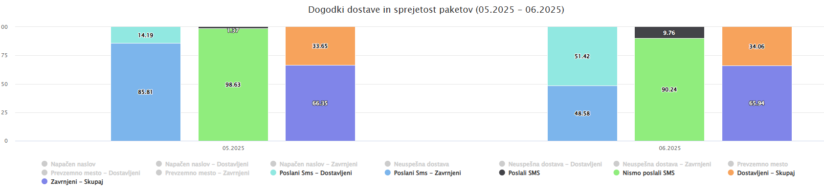 También está disponible una visualización de la efectividad de los mensajes SMS empleados para fines de notificación durante el proceso de entrega: