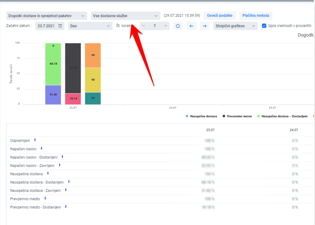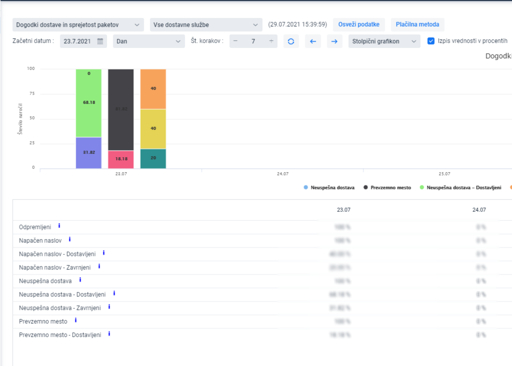 Para que el gráfico se visualice correctamente, es necesario realizar también en Configuración la asignación de estados correspondiente a los paquetes entregados y rechazados.