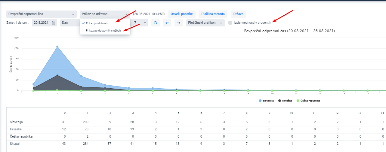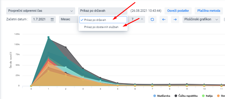 Es posible visualizar los datos por países o por servicios de entrega:
