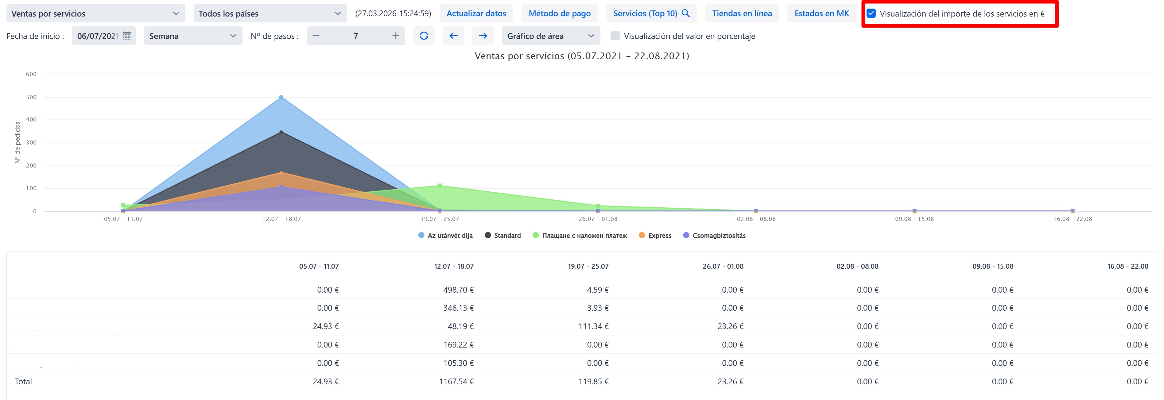 El gráfico también permite visualizar el importe de los servicios para el periodo seleccionado: