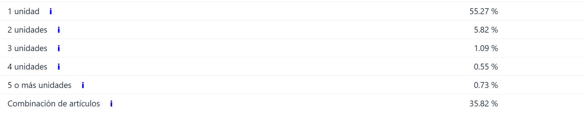 3 o más unidades - Pedidos que contienen tres o más unidades de un mismo producto.