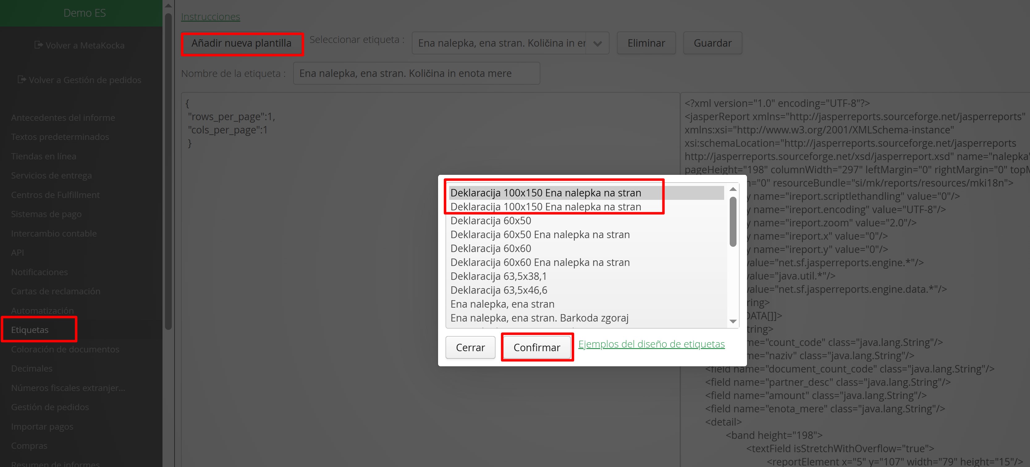 2. Añada una plantilla para imprimir las declaraciones; puede elegir entre las siguientes: