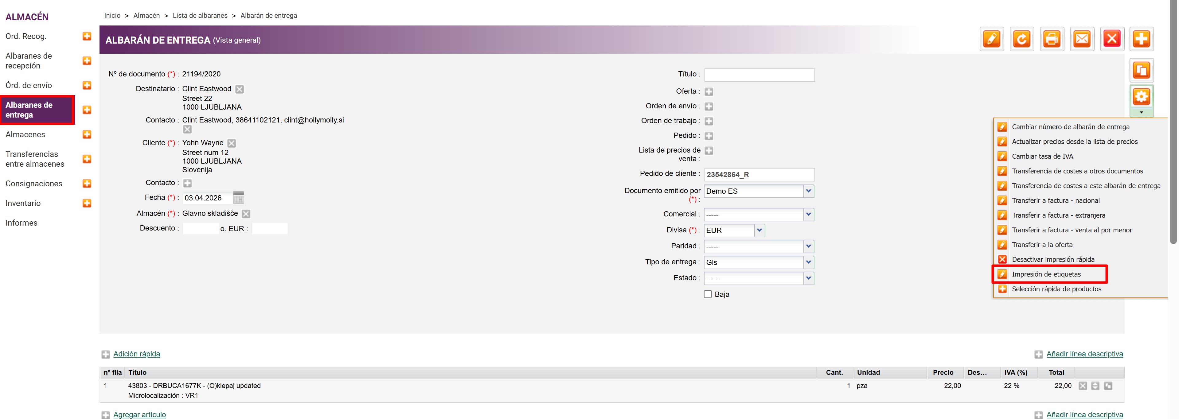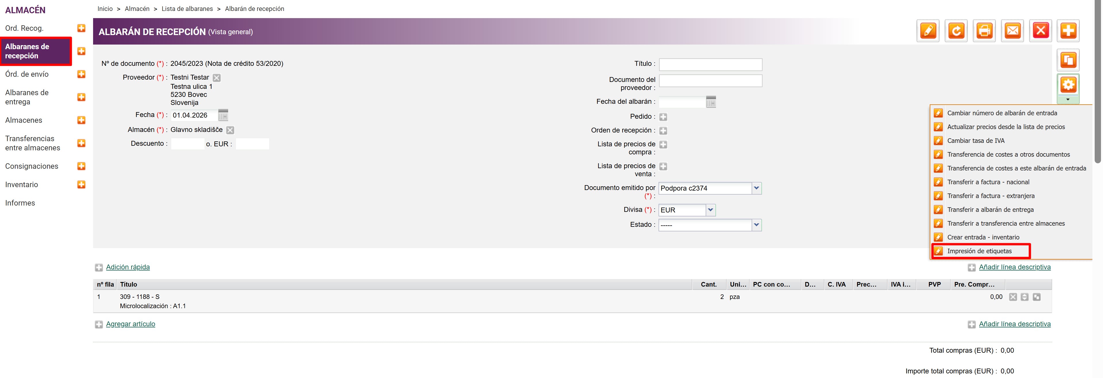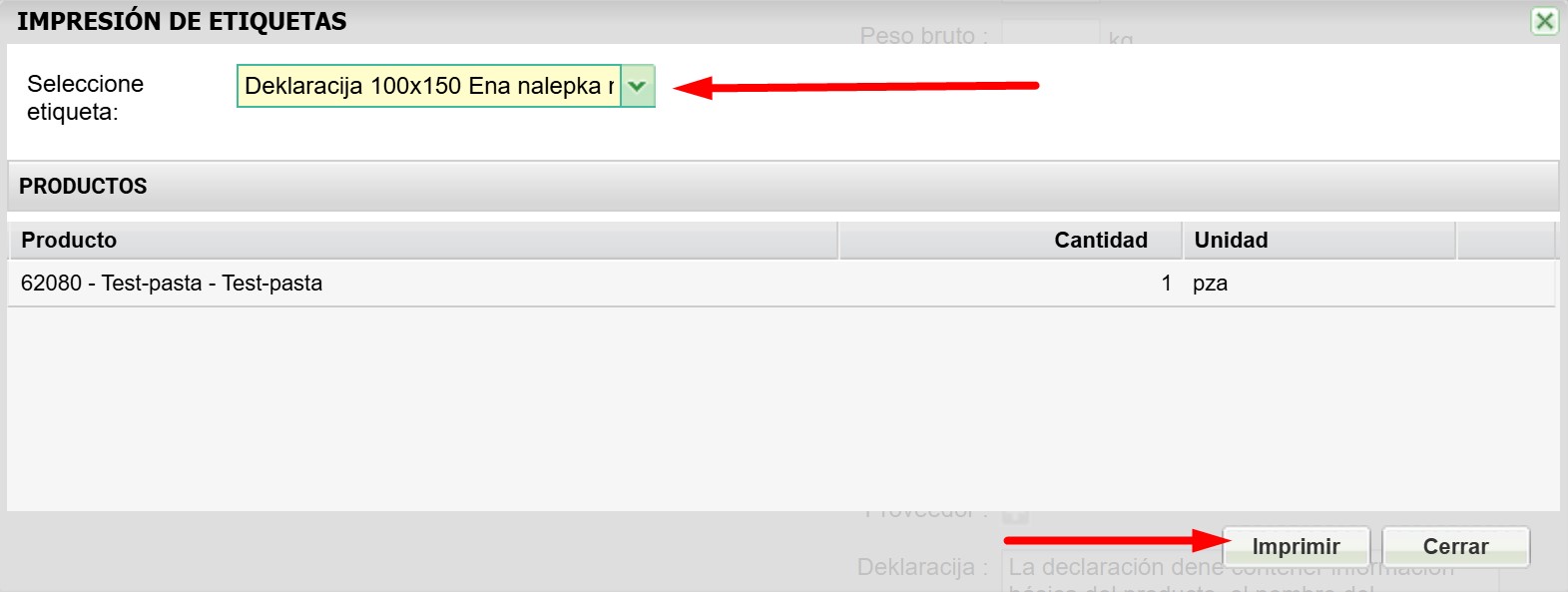 3. Es posible imprimir las declaraciones desde la lista de productos o listas de documentos, tales como albaranes de recepcićon, albaranes de entrega, o transferencias entre almacenes.