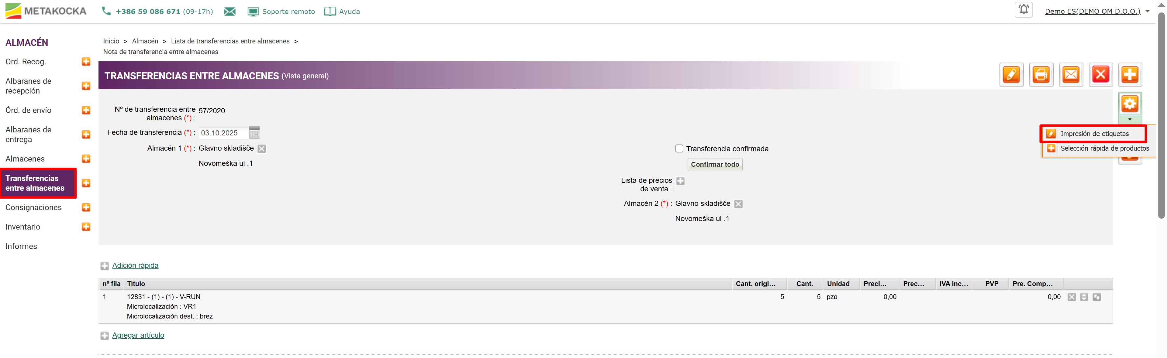 TRANSFERENCIA ENTRE ALMACENES