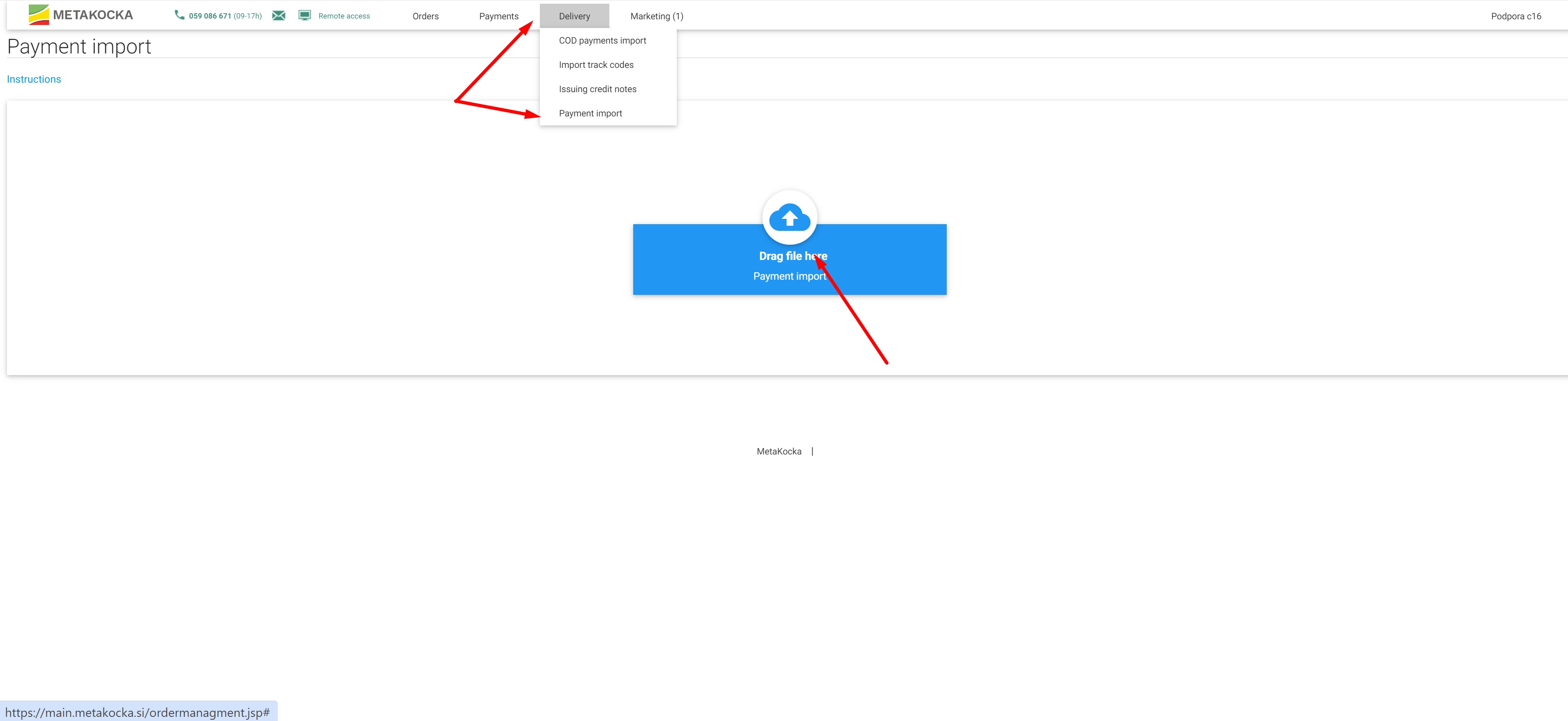 La funcionalidad de importación de pagos está diseñada para importar los pagos recibidos en la cuenta bancaria por los pedidos recibidos, exportados en formato XML desde el banco, e importarlos a MetaKocka. De este modo, los pagos recibidos por pedidos en los que los clientes han seleccionado el pago por transferencia bancaria (o por factura) se añaden a los pedidos en MetaKocko.