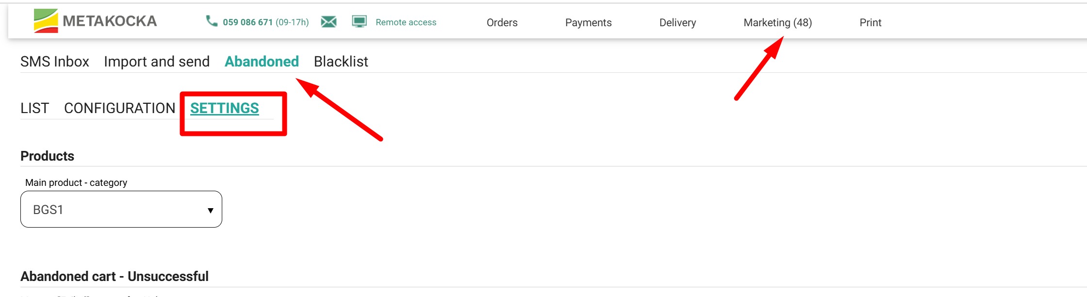 En la configuración de Carrito abandonado puede definir una categoría que indique el artículo principal: