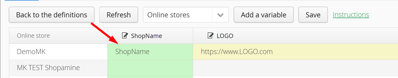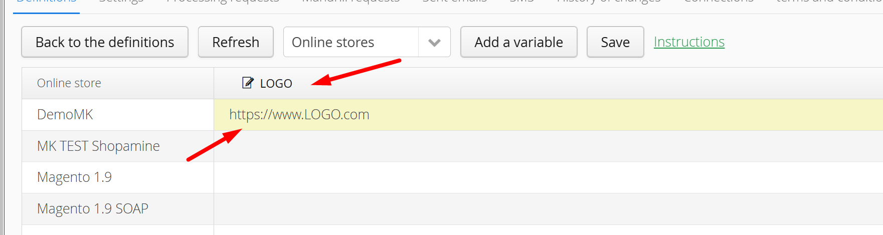 En lugar de crear varias definiciones diferentes solo por el logotipo, insertamos la URL del logotipo en las variables: