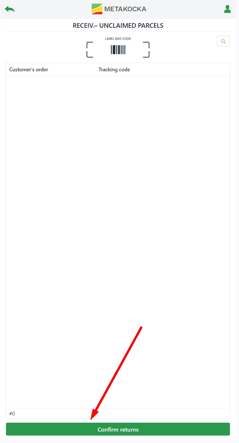 Es posible escanear varios paquetes a la vez. Una vez finalizado el escaneo, haz clic en Confirmar devoluciones para devolver el stock al almacén.